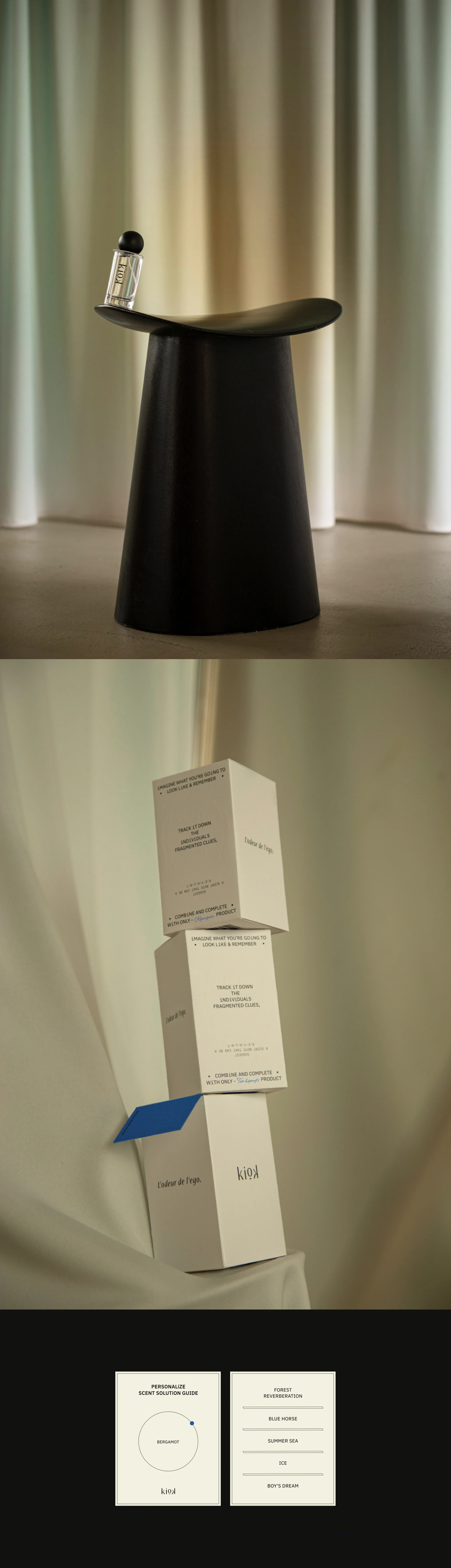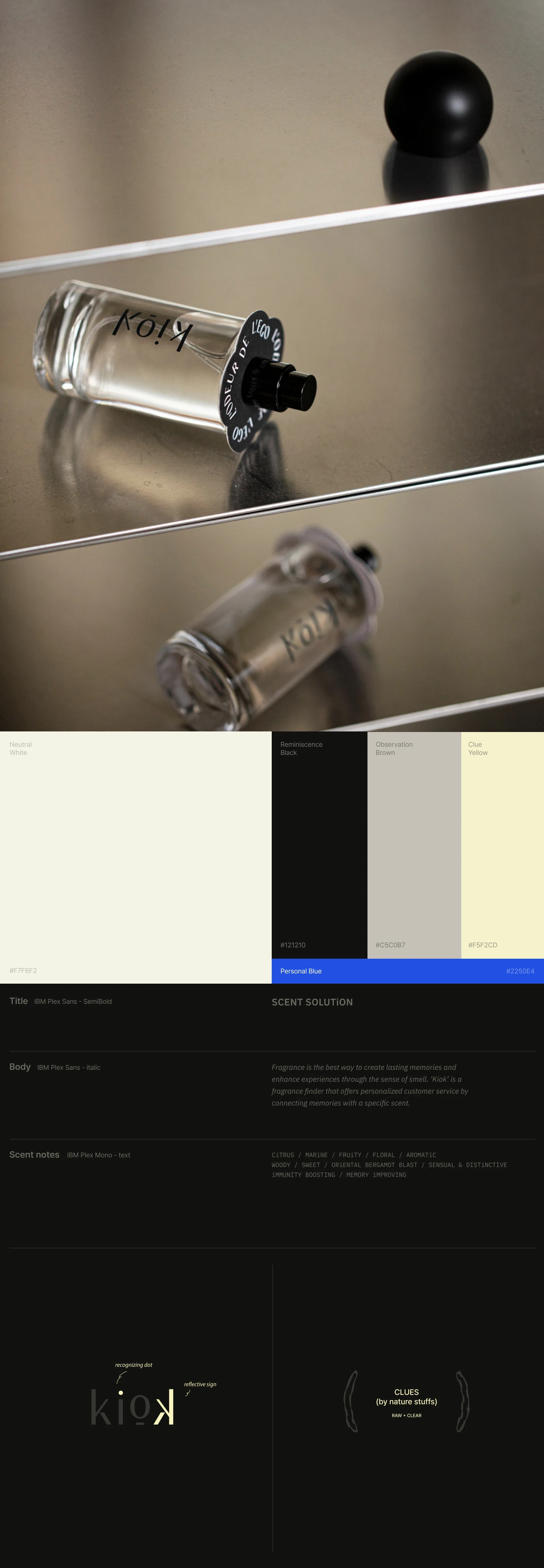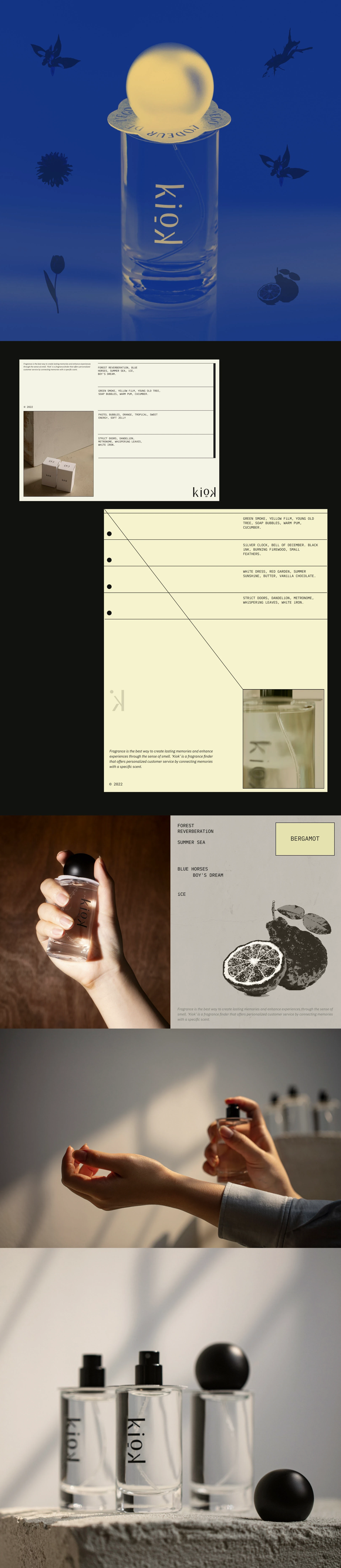 'kiok' is a company that specializes in creating scents by interpreting customers' preferences and proposing unique scents. Professional perfumer has been searching for the optimal scent for decades, creating a variety of products including perfumes, candles, and diffusers. Just as a song from someone's childhood represents that time, a scent is a memory that lingers with us in our daily lives, intimately identifying objects and spaces.